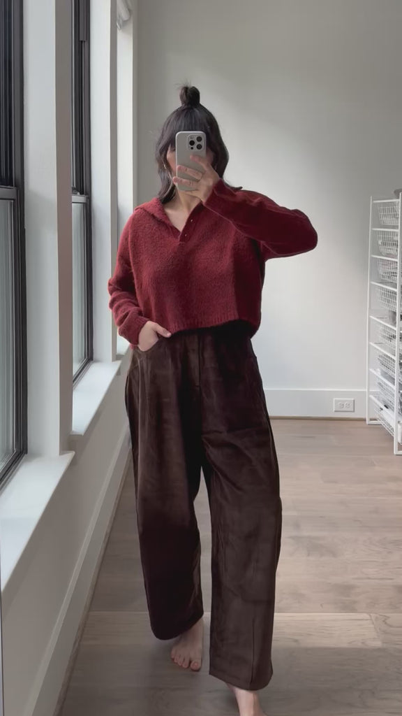 The Baby Alpaca Polo Sweater is a timeless and iconic sweater from Cordera. Lightweight and cropped oversized shape. Details include polo neck with buttons and long sleeves with two buttons on the cuffs. Soft and delicate yarn perfect for an easy outfit.